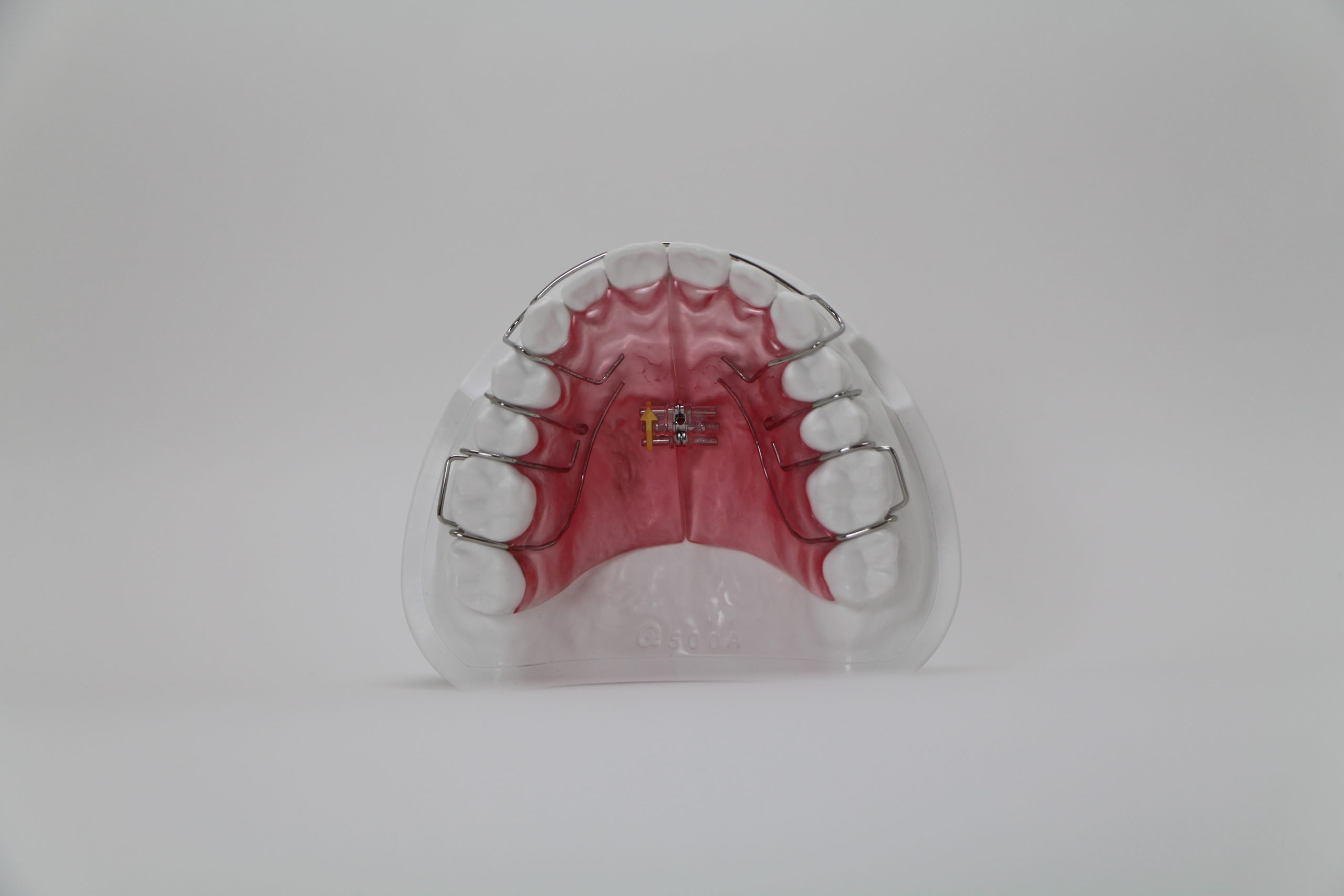 上下一次元装置(プレートタイプ)による反対咬合の改善と、将来的な歯列アーチの拡大を図るための拡大装置を併用しました。